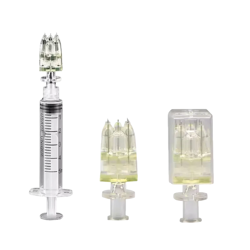 L'aiguille méso à 5 aiguilles est un instrument de mésothérapie spécialisé doté de cinq aiguilles ultrafines disposées avec précision. Cette conception permet l'administration simultanée de principes actifs, de vitamines ou d'acide hyaluronique dans les couches cutanées ciblées, à une profondeur contrôlée et avec un minimum d'inconfort. Contrairement aux systèmes à aiguille unique, la configuration à cinq aiguilles offre :
