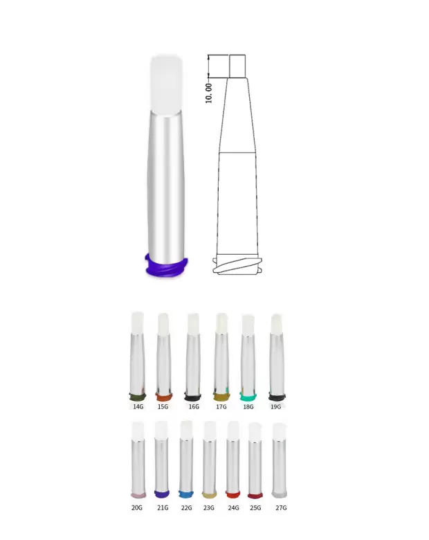 | Norme | diamètre extérieur de la nodule | diamètre intérieur de l'aiguille | Couleur | Envelopper |
